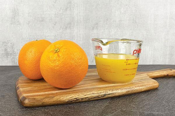 ក្រូចធំ 2 ផ្លែ (បកសំបក) = ទឹកក្រូច 1 ពែង
