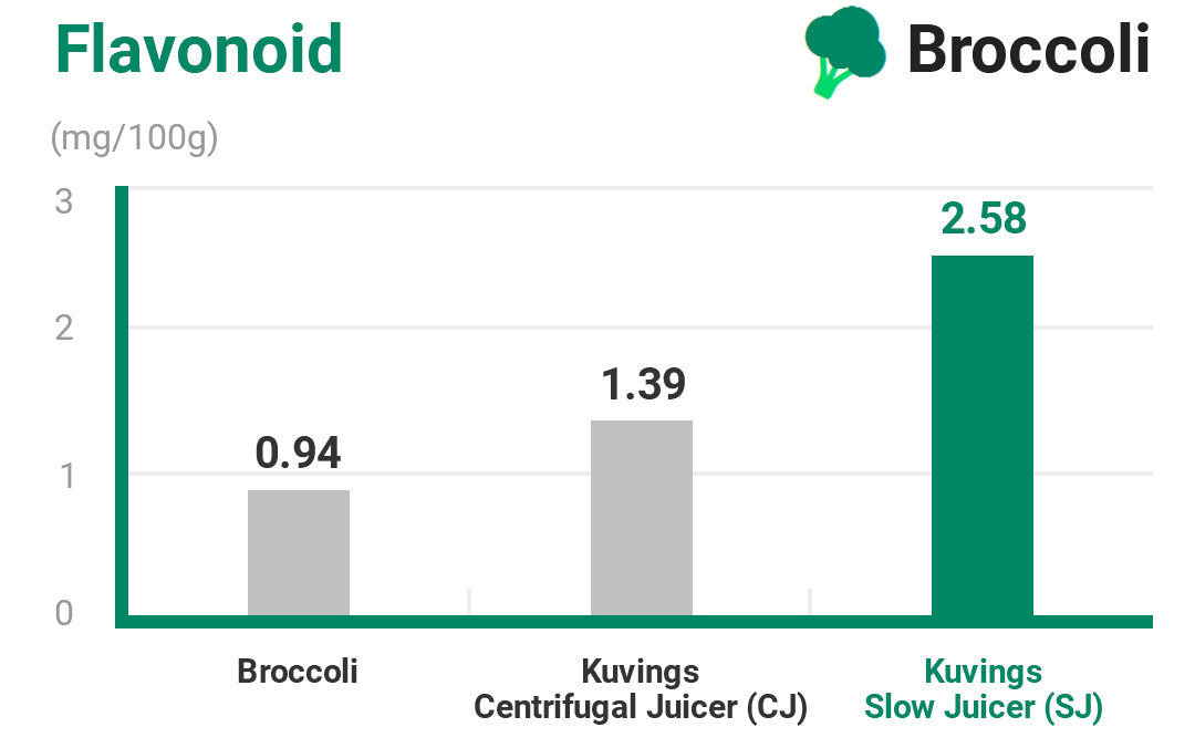 Flavonoid៖ ទឹកផ្លែឈើពីម៉ាស៊ីនដំណើរការយឺតៗមានផ្ទុកសារជាតិ flavonoids ច្រើនជាងផ្លែឈើ និងទឹកផ្លែឈើ 1.5 ដងពីម៉ាស៊ីន Centrifugal ។