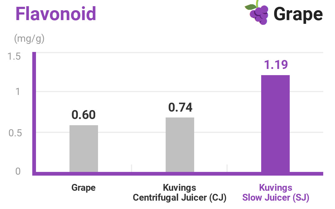 ទឹកផ្លែឈើដែលចម្រាញ់ចេញពីម៉ាស៊ីនដំណើរការយឺតៗមានផ្ទុកសារជាតិ flavonoids ខ្ពស់បំផុត ដែលទទួលបានពីទឹកដែលចម្រាញ់ចេញពីសំបកទំពាំងបាយជូរ និងគ្រាប់។
