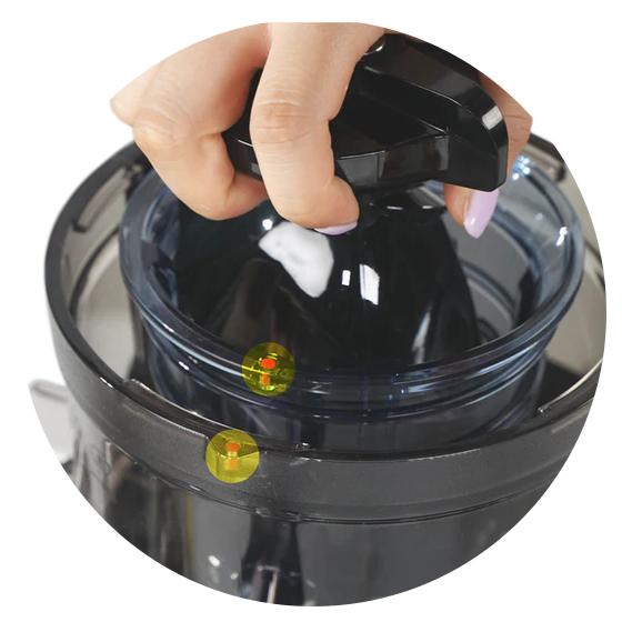 វាមានសុវត្ថិភាពជាងមុនដោយការភ្ជាប់សោសុវត្ថិភាពពីរដែលដំណើរការតែនៅពេលដែលផ្នែកទាំងអស់ដូចជា drum, lid និង screw ត្រូវបានផ្គុំឱ្យបានត្រឹមត្រូវ។